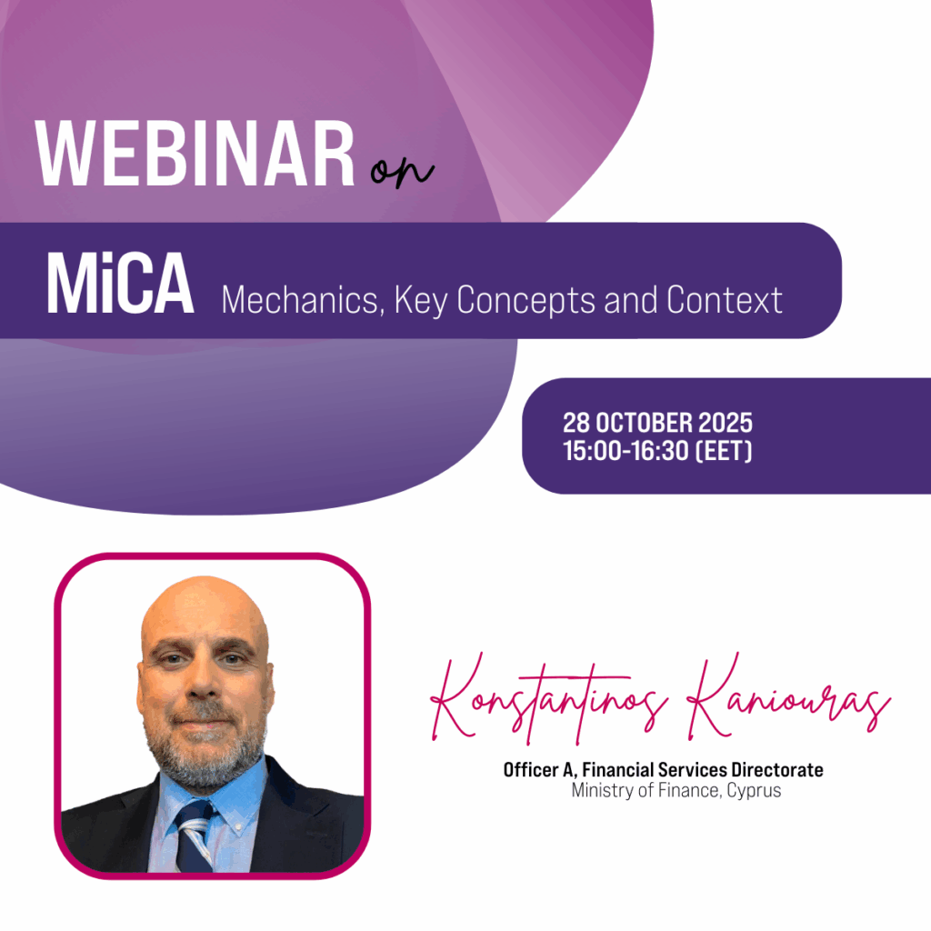 MiCA has moved from policy to practice, raising new questions for everyone involved in Europe’s digital finance space. This webinar looks closely at how the regulation works in real terms, its scope, the treatment of tokens and CASPs, and the grey areas emerging around stablecoins and PSD II. Led by Konstantinos Kaniouras from the Ministry of Finance of Cyprus, the session offers a clear, informed take on what MiCA means in day-to-day application.